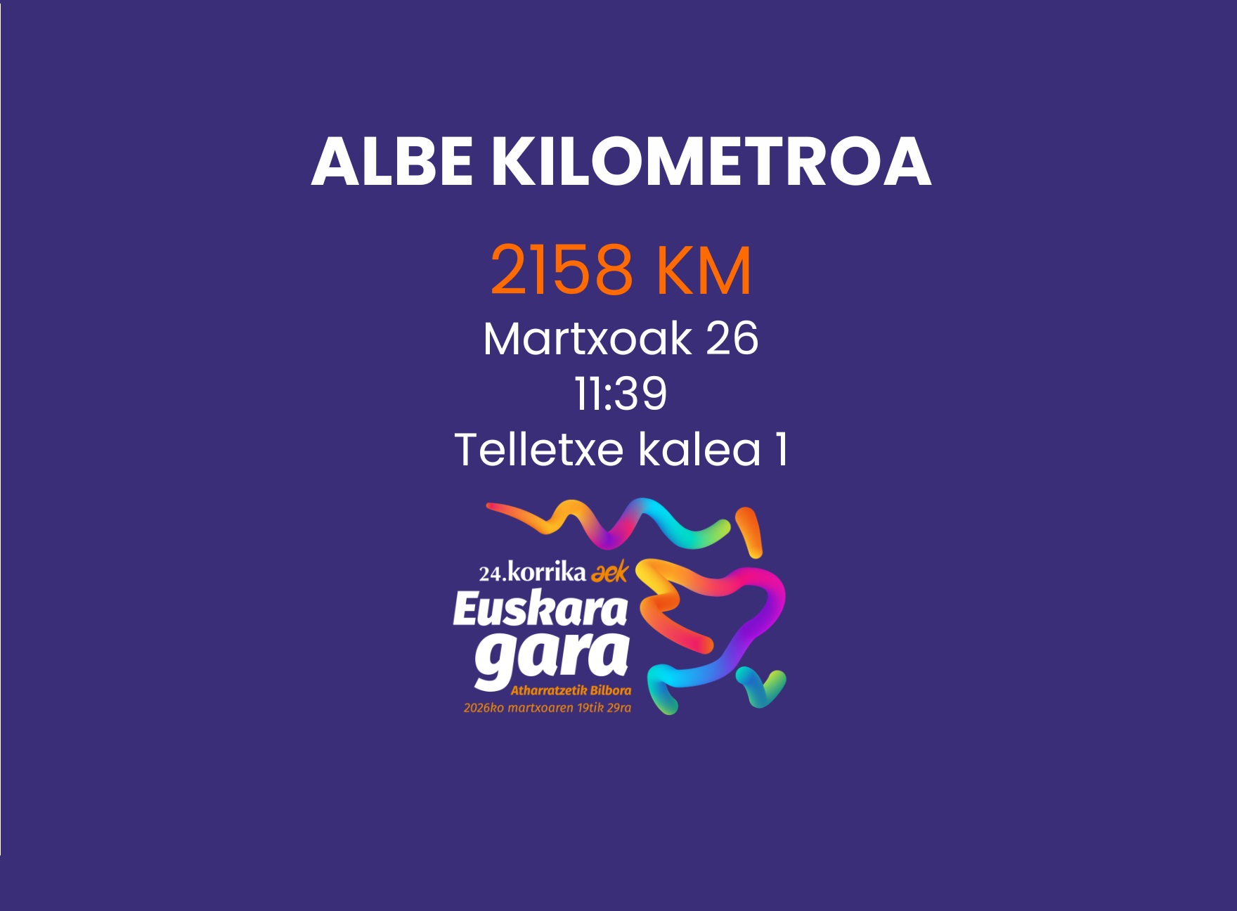 • Badator Korrikaren 24. edizioa, eta ALBEkook prest gaude euskararen aldeko ekimen honetan parte hartzeko, aurten Azebarri kultur elkartearekin eta Algortako Bote Luze taldearekin batera. Ostegunean, martxoak 26, Algortan hartuko dugu lekukoa 2158. kilometroan, 11:39ean