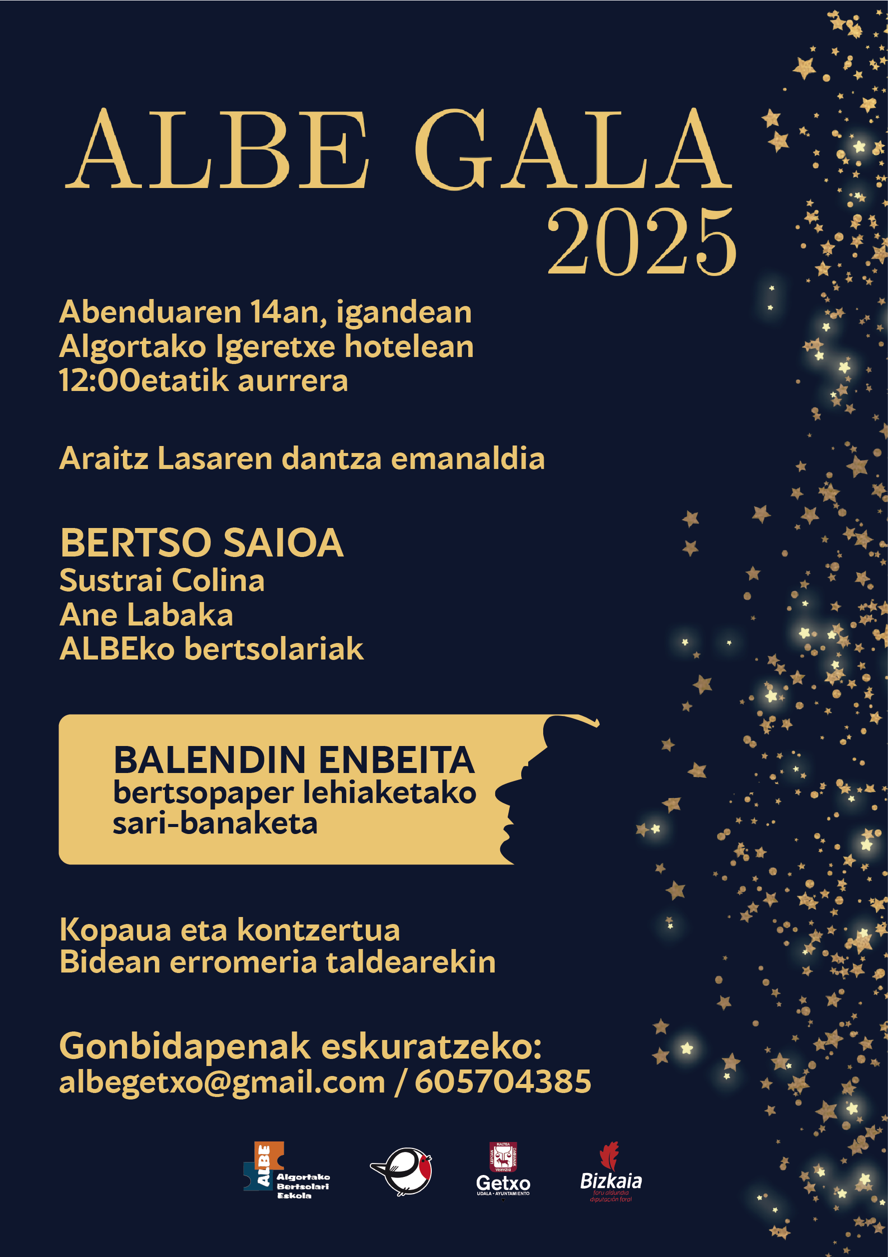 Ekitaldia 12:00etan hasiko da Algortako Igeretxe hotelean. Aurten Balendin Enbeita bertsopaper lehiaketaren sariak banatuko dira, eta Ane Labaka eta Sustrai Colina arituko dira bertsotan, ALBEko bertsolariekin batera. Araitz Lasaren dantza emanaldiak emango dio hasiera ekitaldiari, eta amaieran koktela eskainiko dugu, Bidean erromeria taldearen
